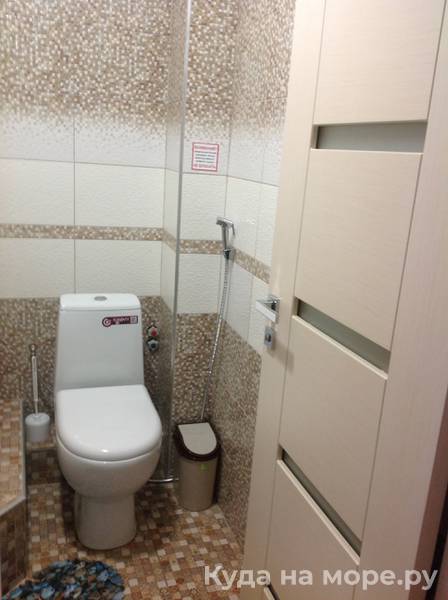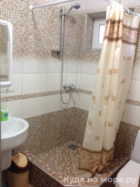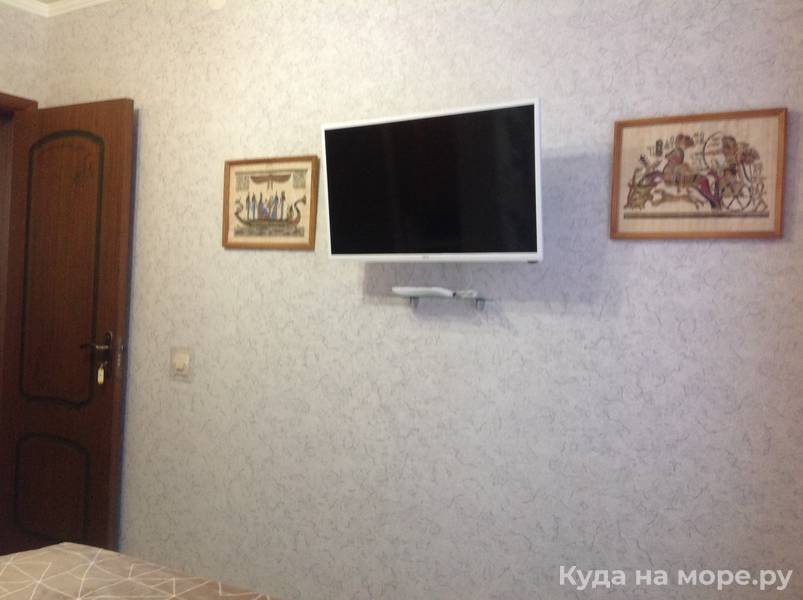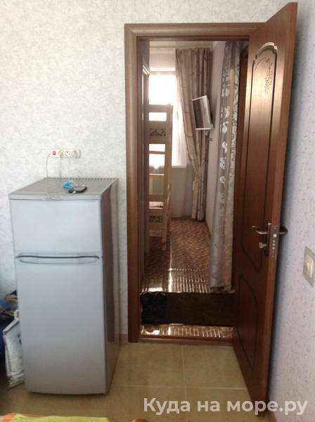 2-х комнатный номер с 2 телевизорами, с 2 кондиционерами, холодильником, с 2 окнами (в сторону моря и в сторону двора), с 1 кроватью шириной 160 см и двух ярусная кровать шириной 80 см.). В номере есть свой туалет и душ. Рядом кухня на 3 номера.